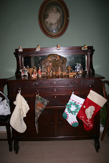 My Fontanini Nativity and our Stockings. I still need to get Brooksie one.