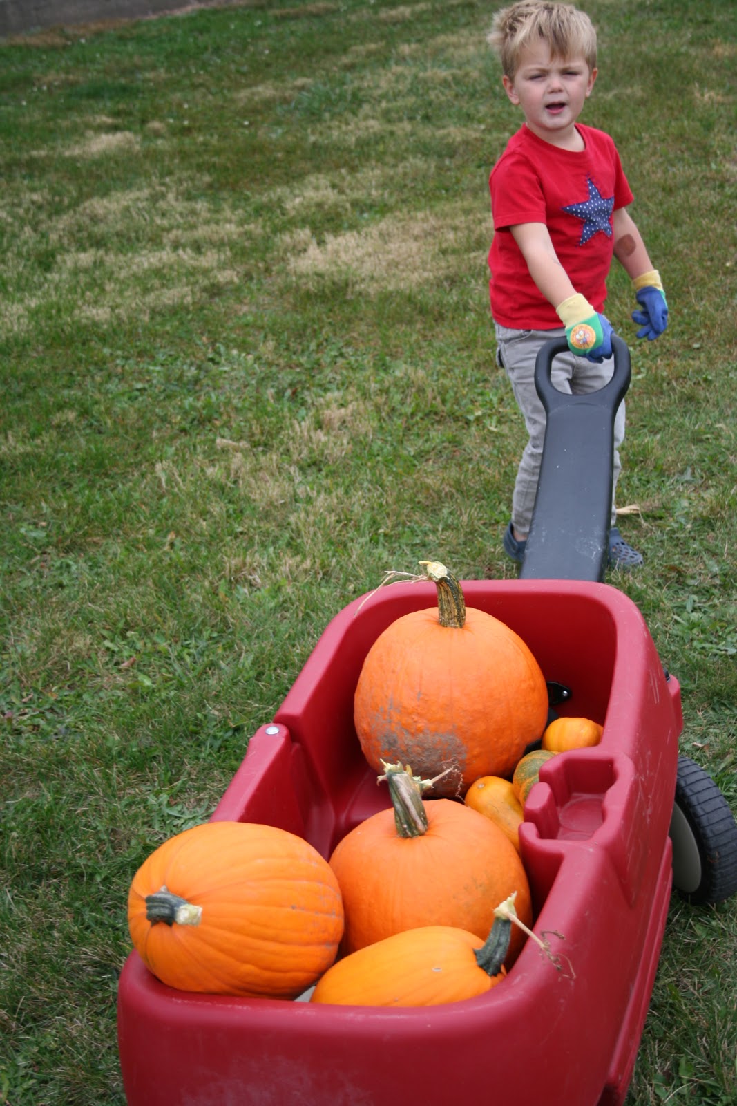 So... after naps the boys and I trecked out to the little makeshift patch and picked all the pumpkins. I will admit that this is when I finally cried on his birthday. I had held it together the whole day. But not now.